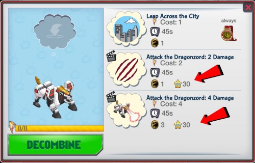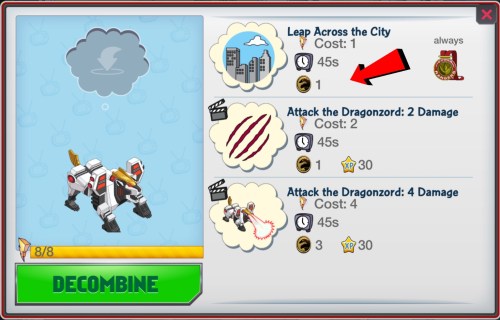 ***Please note some players are still experiencing crashing issues when they attempt to Decombine their Zords, TinyCo have been made aware of this, but if you’re having this issue I recommend once you hit Decombine immediately visit OllieLand then back before you tap anything in your game, this seems to get round the issue***