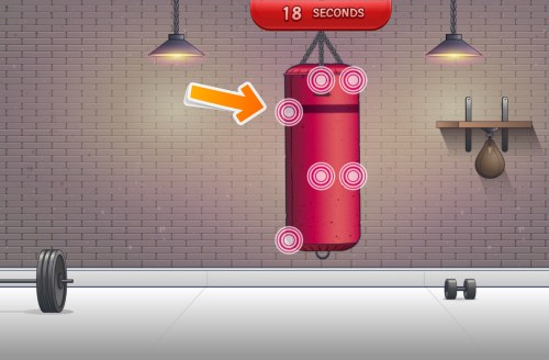 And now you’re ready to train, basically you will see targets appear on the punch bag and you must tap these as fast as you can, when you tap all targets on a bag you will get another until your 20 seconds is up.