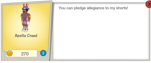 Purchasing Apollo Creed will help you complete the Boxers and Dreamers Facespace set, this  is worth 10 clams upon completion.