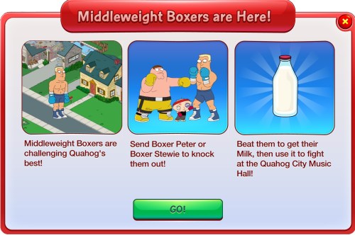 This is pretty simple, you need Boxer Peter, Boxer Stewie (premium character) both have a 6 hour task to do this, although Clubber Lang aLeo originally had a task, TinyCo appear to have removed this. We are trying get verification from TinyCo on what’s happening with Clubber Lang.