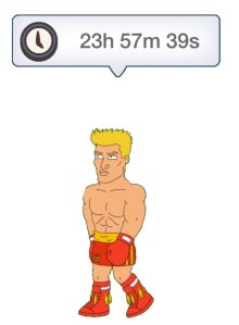 • I agree with RT’s assessment – no guarantees if you do, but it looks awfully hard if you don’t, which is why I gritted my teeth, turned away and hit the ‘BUY’ button…so far, I’ve collected 14 Vodkas from him, and I’m going to campaign him and collect 32 before I battle so I can go all the way through…my biggest concern is for milk bottles to earn the buildings that drop vodkas – that’s the bigger concern IMHO…with just Clubber Lang dropping Vodka, it’s a 64 hour cycle (with NO sleep! Yikes!) to get one complete cycle…