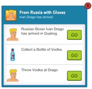 So, RT, if you decide to do a “How did you do?” poll for this event, please let’s consider Ivan Drago to be Premium. He cannot be honestly be considered freemium. (…Maybe…if TinyCo changed all the Vodka dropping tasks to be 2x Vodka…then freemium players *might* have a chance.)