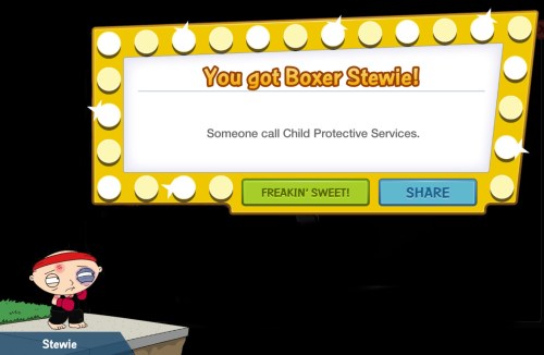 When the timer is up, just tap on the Check Mark above Al’s to pull Boxer Stewie into your game.