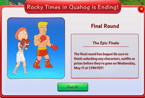 There you have it, some basics for closing out of the Rocky Times In Quahog event. Any last minute items you are picking up? Any tips for other players finishing out the Event? Let us know. And remember to look out for the End of Event Poll coming your way soon.