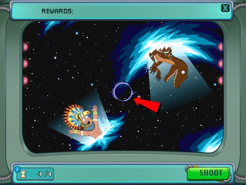 This was what Troy said in his comment: “My two cents to help as much as possible… Explore the target boundaries by just moving around the cross hairs; you will quickly change what you’ve been aiming at. For instance, the hat and headdress are NOT included in the target area, however below these two rifts there is a rather notable blank area that DOES count as target area. Then, behind the dinosaur’s​ back is a dead zone even though it may seem otherwise. Hope this helps to improve aim!”