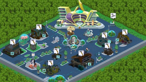 To go to the Future, just select it from the Phone Booth Time Machine screen, the button will turn to a green “EXCELLENT”, tap on green button, you will now be taken to an alternate play area.