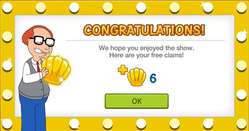 And the only issue I’ve encountered so far is I’m awarded 6 clams instead of 7 but the way I see it is 6 free clams a day is better than 0 free clams, and just today after logging in a few hours after watching the videos and getting my 6 clams, I received another 1 clam. So I got 7 for 7.
