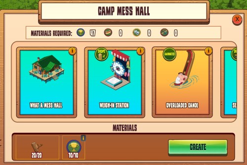 There you have the overall look of the many Items/Buildings that the Phase 2 Camp Mess Hall has to offer along with the amount of Firewood and Participant Badges you will need to get them all.