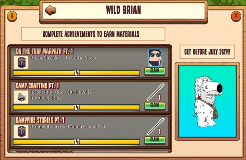 6. I finished brians costume and what a joke! No Questline! Literally a useless costume with no drop jobs. Ugh. Plus my whole Quahog is land locked with no space for buildings now. Need land upgrades like tapped out.
