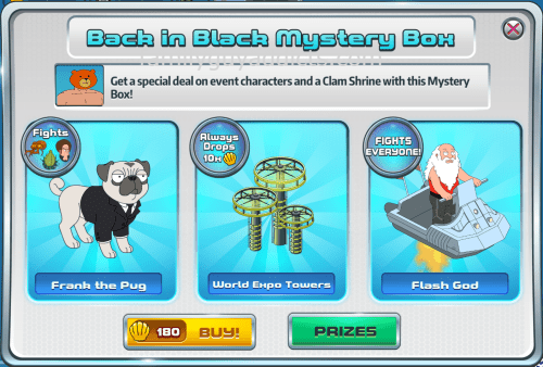 A New Guys In Black Event Mystery Box that dropped into our Quahog’s called the Back in Black Mystery Box. There are also some additional items in the Shopping Cart for Alien Slime.