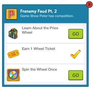 Well this is easy, once you’ve collected 2 Wheel Tickets tap either the Wheel Of Prizes decoration or the Wheel Of Prizes Icon to open the spinning screen.