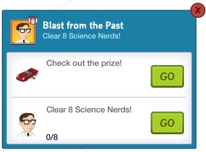 • So I wasn’t able to see my game for four hours (!!! Four whole hours!!! Yikes!!!) and Peter was able to get his 4 hour task done per game play task, so that was nice. Still no nerds. I cleared up some other characters, took out some wheelie hamsters, checked to see that I was still WAY away from getting the next 4 passes, came out of that and was about to in game message TinyCo AGAIN about the nerds, when lo and behold, a tiny pop and a shimmer and two nerds started their walkabout. If the task is four hours, will their be nerds waiting, available, when this task ends or is there going to be some indeterminate delay?!?! Maddening!!! I have both Ferris (of course I bought him! He’s Ferris Beuller!!!) and Peter doing their nerd clearing thing to try to gather hall passes and this seeming built in delay is frustrating as all get out!!!