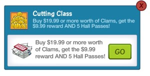 Did anyone else see the 3day clam offer stating that if you purchase 19.99 clams you will get also the 9.99 reward and 5 hall passes? I did this and all i got was the 600 from the 19.99. Idk what else they could mean by the 9.99?