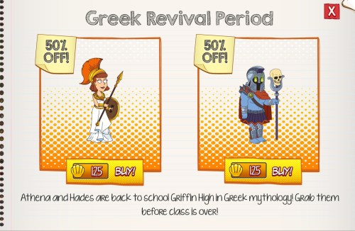 Why? Well it’s all Greek to me but TinyCo felt whilst we’re hanging out at Griffin High we might as well learn something about Classic Greece. So they’ve sent Athena and Hades back to Quahog.