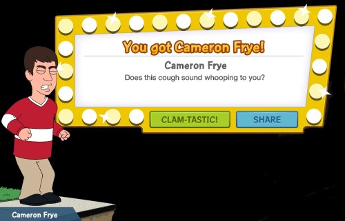 Let’s throw you some information on what Cameron Frye can do in our silly lil games.Cameron Frye is a New Character added during the Fast Times At Griffin High  event. As with many characters in the game in order to get them you have to collect lots of stuff!