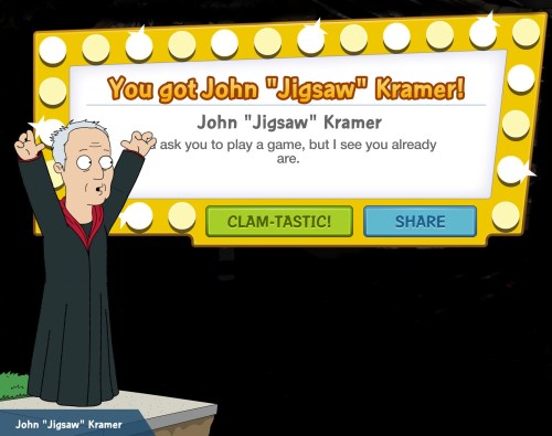 Let’s throw you some information on what John ‘Jigsaw’ Kramer can do in our silly lil games.John ‘Jigsaw’ Kramer is a New Character added during the A Very Griffin Holo-ween event. As with many characters in the game in order to get him you have to collect lots of stuff! You will be directed to unlock him via the Piece Of Work questline. Tapping on Go will take you to the Event area where you repair him for unlocking.