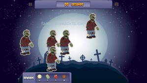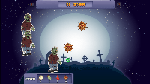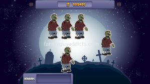 Several Zombies appear on the screen. They will vary in groups of 4 to 6+. Get your tapping finger ready as you are about to go a hundred miles an hour tap tap tappin away.