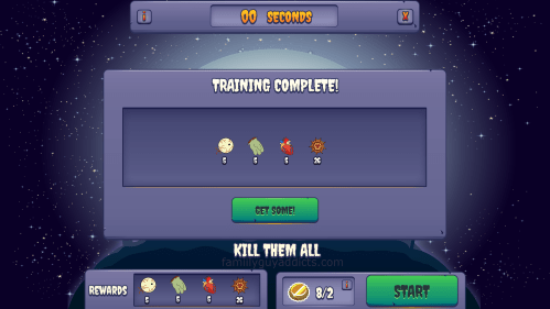 You will then see the Zombie Firing Range Pop Up Screen. Across the top center, you will see you have 20 SECONDS to tap as many Zombies as you can. On the bottom left is where you will see your REWARDS collecting as you tap on the Zombies. On the bottom right is where you will see how many Bottle Caps you have currently collected as well as the START button.