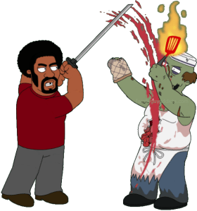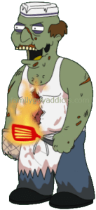 Once you have created a few Swords, just locate a Cook Zombie wandering your Quahog Streets and tap on it.