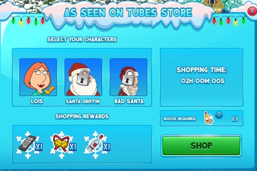 Simply tap on SELECT to choose the Character, at first you’ll only have Lois showing as available as you work toward unlocking Santa Griffin and Willie Stokes. Once you’ve selected your character or characters, yes you can select more than one once available, simply tap SHOP.