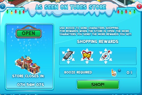 Now there is a little twist to this, I mentioned it briefly above and it is that you can only shop whilst the store is open, this is initially for 8 hours before it closes for 4 hours, then you simply need to wait for it to reopen or speed up the process with clams. So try to utilise the time it’s open wisely and build up Eggnog whilst it’s closed.