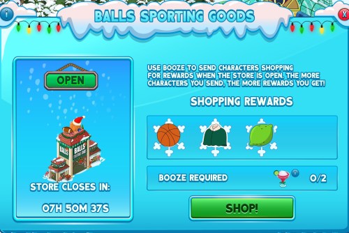 This is where a new store where you send you characters Christmas shopping. It’s quite simple like last weeks store, you just tap on the building and you’ll see the shopping screen.