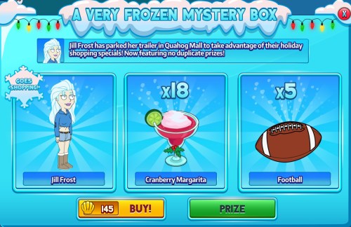 Eggnog (Always) – Get from clearing Infomercial Salesman, Eggnog Stand, Some tasks on Santa Wishlist, the A Very Frozen Mystery Box