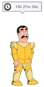 I had already beat him at the 4x level, so I spent the 58 Clams (40 for more Bug Sprays and 18 to Revive Sir Knight-a-Lot at the 5x level) rather than waiting to collect a full 30 Potatoes (I only had 6 at that point). That would have taken too many days to complete. Especially since Griffins are not yielding as many Bug Sprays (because of the Gold Token) and using the Bug Spray doesn’t always drop a Potato.