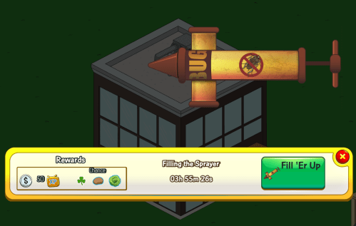 If she’s not completed the task yet you’ll see this screen with either Fill Er Up or Spray if you’re free one is ready.