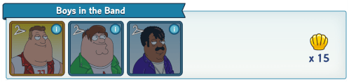 Characters/Costumes Required To Complete Collection: Plastic Surgery Peter, K-Pop Joe, Bad Boy Cleveland (note not all characters are available yet)