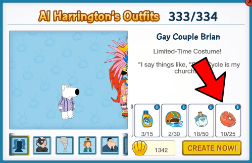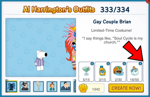 Just dropping by with a reminder to check the unlock requirements for Gay Couple Brian carefully in Al Harrington’s. He is another one of the occasional costumes that has 5 different unlock requirements and some of you are not noticing the 5th item, the Grapefruits, as they are off-screen.