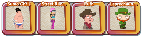 Characters/Costumes Required To Complete Collection: Sumo Chris, Street Racer Bonnie, Ruth & Leprechaun Stewie