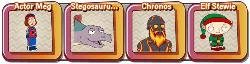 Characters/Costumes Required To Complete Collection: Actor Meg, Stegosaurus, Chronology & Elf Stewie