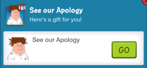 I must say….. TC is hitti g out of the park theses days…. Making up for these issues is….. We’ll very cool of them. Changing the unlock requirement for stewie and the 50 clam bonus was extremely nice of them.
