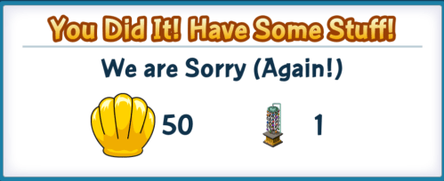 3 responses to “We Are Sorry (Again) Quest – Get The Bottle Clam Statue & 50 Clams Free!!!