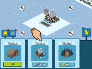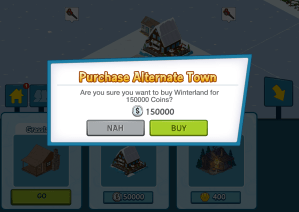 Then you’ll click on the Winterland town to buy it, but be aware tapping this initially does not actually buy it.