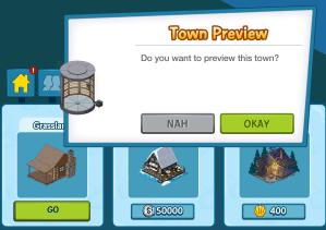 Click Buy and you’ll get a pop up confirming you’ve bought the new town.