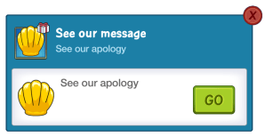 You should all be back in your games now and hopefully be receiving a little gift of 50 Clams and a Silver Popularity Statue from Jam City to apologise for the downtime.