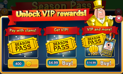 Now this is the other question I’m being asked, and it’s harder to answer, but basically there’s 3 options, unlock the VIP Season Pass tiers with Clams, with your hard earned cash or there’s the option for VIP and more.