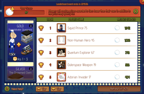 Yes with the new Extreme Sports event well underway, TinyCo decided to beta test this, and dangle some leaderboard prizes as bait for us Addicts and I thought I’d bring you a quick guide to the Leaderboard and ask you if you wantto make them a bit more fun.