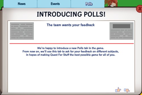 The news stand has a new 3rd tab now, Polls. Be interesting to see how this develops.